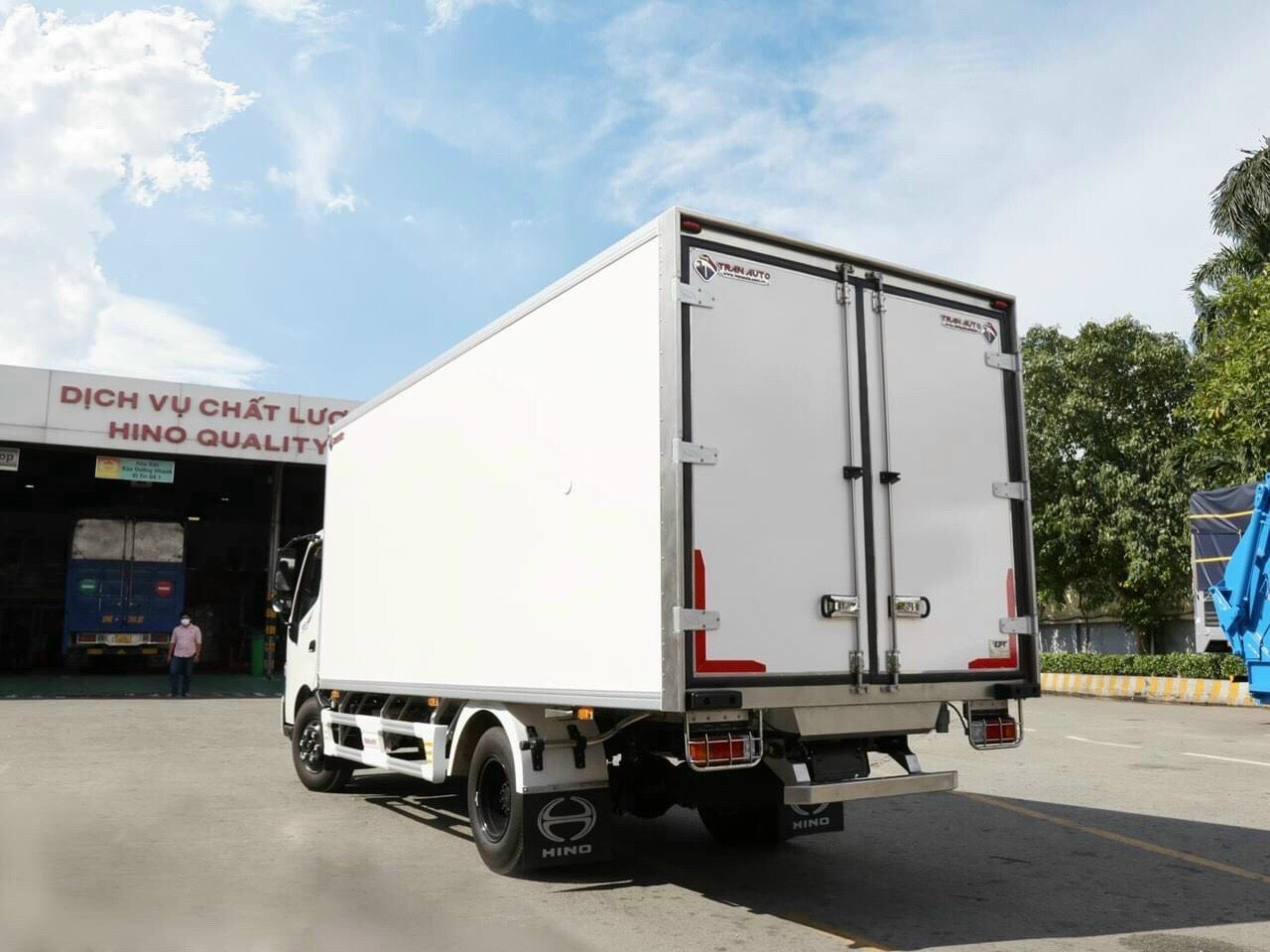 Thay đổi vị trí logo hino, cánh tản nhiệt, thêm tấm bảo vệ, đổi màu ga lăng lấy gió từ màu đen sang trắng khi nhìn nhận mẫu cabin hino XZU710l.