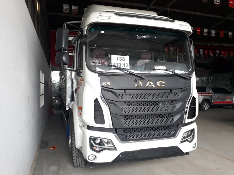 XIN TRÂN TRONG GIỚI THIỆU ĐẾN QUÝ KHÁCH DÒNG XE TẢI JAC K5 2 CHÂN , TẢI TRỌNG 9 TẤN , Kích thước lòng thùng hàng (hoặc kích thước bao xi téc) : 7710 x 2360 x 800/2150 mm