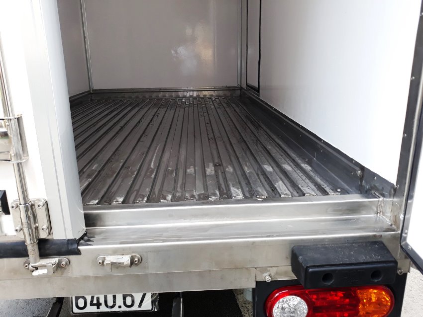 Do xe đổ form chất lượng nhập khẩu châu Âu. dầy và an toàn . nên tải trọng thùng xe đang kí chuẩn 990 kg xe tải đông lạnh hyundai 1 tấn thùng tiêu chuẩn châu âu ,máy lạnh THERMAI MATER T1400 NHẬP KHẨU KOREA